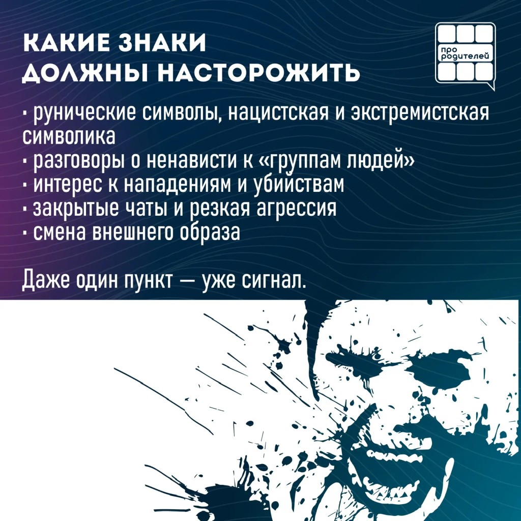 Родителям важно понимать: за этим может стоять не поиск себя, а целенаправленное вовлечение в деструктивные движения, где ненависть и насилие подаются как норма.